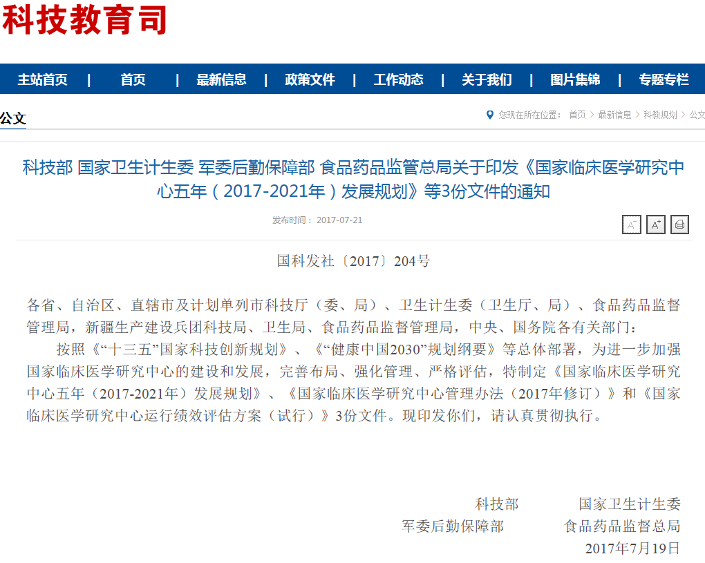2017-07-31 查看更多國家臨床醫(yī)學(xué)研究中心五年(2017-2021年)發(fā)展規(guī)劃國家臨床醫(yī)學(xué)研究中心(以下簡稱“中心”)由科技部會同國家衛(wèi)生計(jì)生委、軍委后勤保障部和食品藥品監(jiān)管總局共同開展建設(shè),是面向我國疾病防治需求,以臨床應(yīng)用為導(dǎo)向,以醫(yī)療機(jī)構(gòu)為主體,以協(xié)同網(wǎng)絡(luò)為支撐,開…