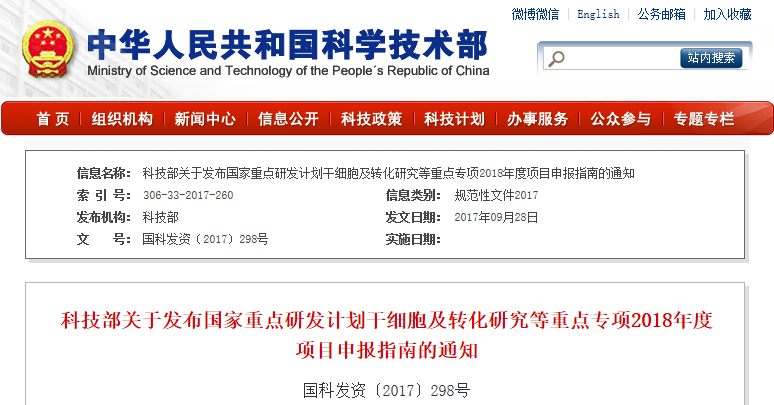 國科發(fā)資〔2017〕298號附件1“干細(xì)胞及轉(zhuǎn)化研究”試點(diǎn)專項(xiàng)2018年度項(xiàng)目申報(bào)指南為取得干細(xì)胞及轉(zhuǎn)化研究的原創(chuàng)性突破和推動轉(zhuǎn)化應(yīng)用,整體提升我國再生醫(yī)學(xué)領(lǐng)域水平,根據(jù)《國家中長期科技發(fā)展規(guī)劃綱要(2006-2020年)》部署和《國務(wù)院關(guān)于深化中央財(cái)政科技計(jì)劃…
