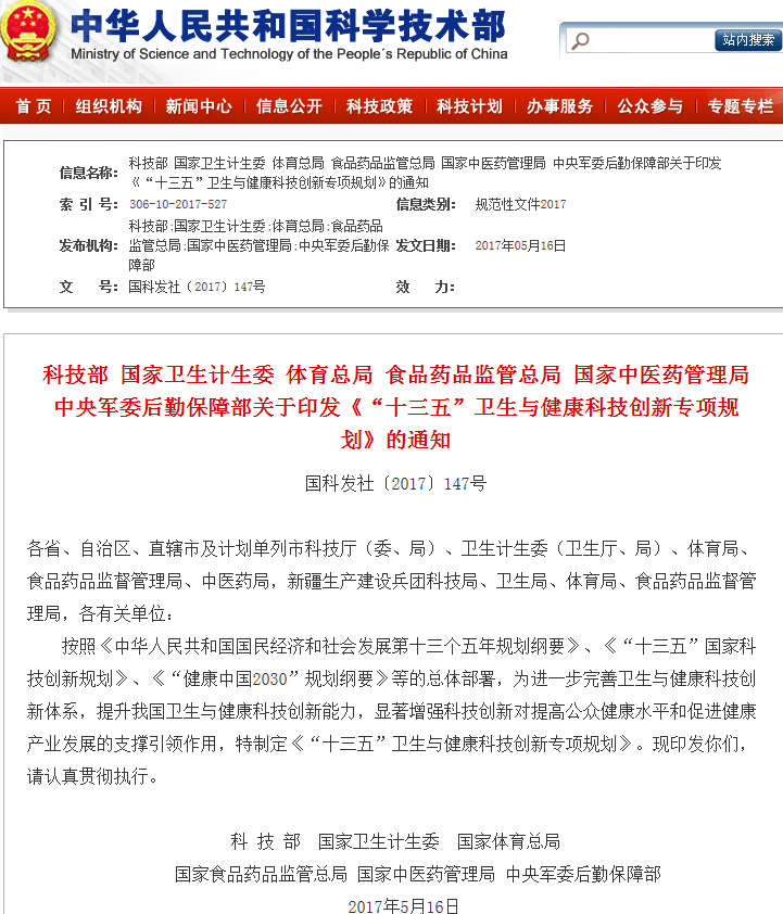 2017-05-31 查看更多“十三五”健康產(chǎn)業(yè)科技創(chuàng)新專項(xiàng)規(guī)劃健康產(chǎn)業(yè)是為維護(hù)和促進(jìn)健康的產(chǎn)業(yè),涉及到生命全周期和健康全過程的產(chǎn)品及服務(wù)。健康產(chǎn)業(yè)涉及面廣、產(chǎn)業(yè)鏈長、綜合性強(qiáng)、增長空間大,是未來國民經(jīng)濟(jì)的重要支柱產(chǎn)業(yè)。按照《國家創(chuàng)新驅(qū)動(dòng)發(fā)展戰(zhàn)略綱要》、《“十三五”國家…