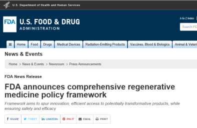 2017-11-22 查看更多美國食品和藥物管理局11月16日宣布,它正在發(fā)布一個新的政策框架,可以更迅速地為患者提供涉及人體細(xì)胞和組織(如干細(xì)胞)的治療,同時對引起安全問題的產(chǎn)品加強執(zhí)法力度。FDA專員Scott Gottlieb博士表示:我們正在采用建立在現(xiàn)有法規(guī)基礎(chǔ)上的,基于風(fēng)險…